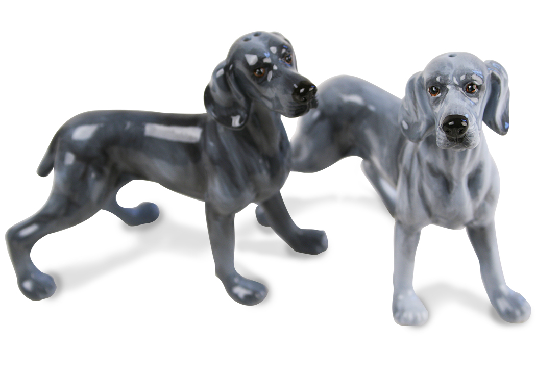 The fearless and headstrong Weimaraner originates from Germany where it was bred to track and hunt large game and its instincts mean it is still used as a guard and watchdog, although it is also a much-loved family pet. Beautifully presented on this Blue Witch ceramic.